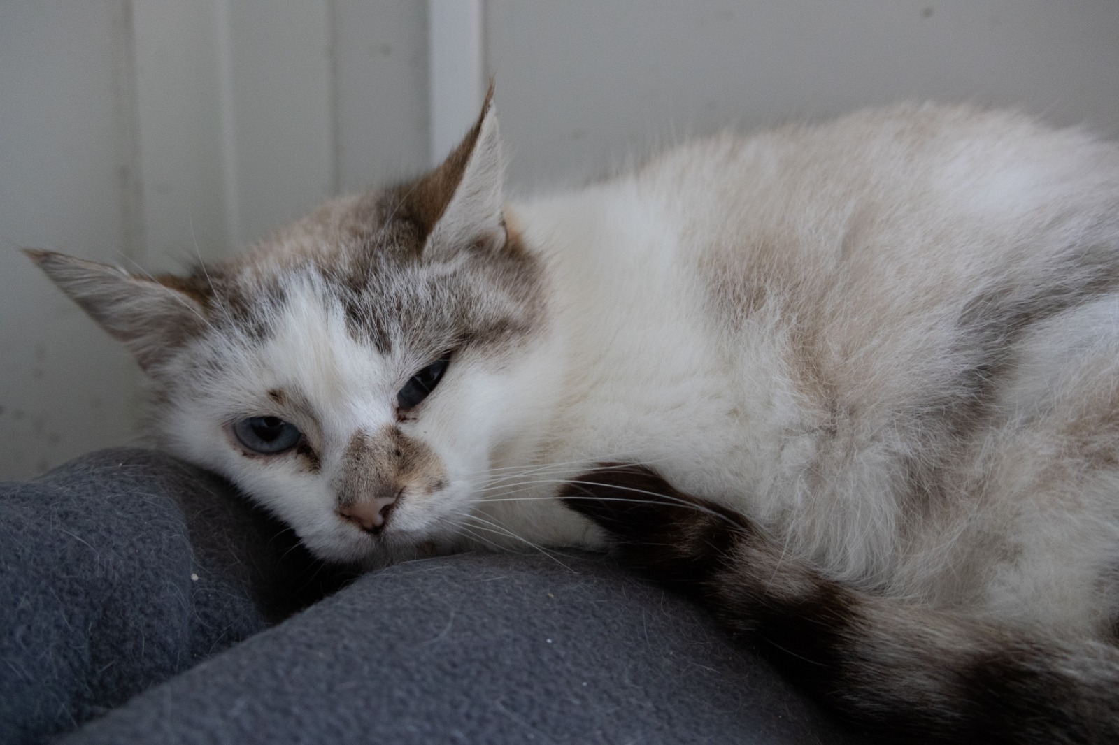 Amnésia est une minette née approximativement en juin 2014, arrivée via une capture sur un lieu de prolifération chez un particulier. Elle est plutôt craintive et calme, elle aime la présence de copains chats, ne connait ni les enfants ni les chiens, nous éviterons donc les placements en leurs présence. Amnésia pourra vivre en maison ou en appartement, si vous avez un accès à l’extérieur il faudra attendre qu’elle est bien prit ses marques à l’intérieur, avant qu’elle puisse le découvrir.