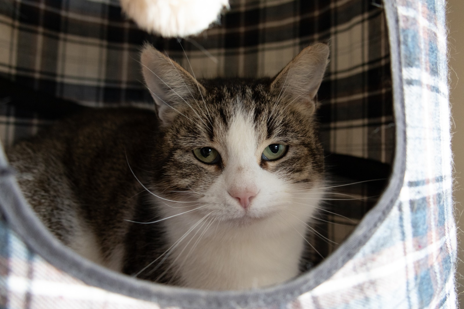 Elle est plutôt câline et calme, elle aime la présence de copains chats, ne connait ni les enfants ni les chiens, nous éviterons donc les placements en leurs présence. Riboul pourra vivre en maison ou en appartement, si vous avez un accès à l’extérieur il faudra attendre qu’elle est bien prit ses marques à l’intérieur, avant qu’elle puisse le découvrir.
